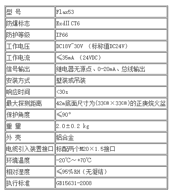 二.Flax53點(diǎn)型紅外火焰探測器技術(shù)參數(shù);