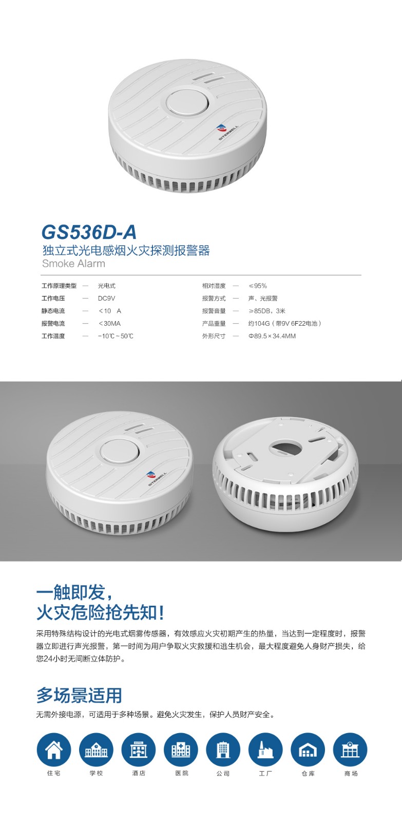 賽特威爾GS536D-A獨立式光電感煙火災探測報警器