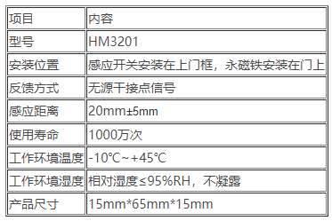 二、HM3201門磁開關技術參數(shù)