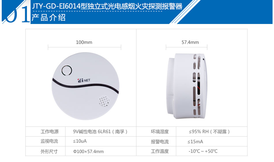 依愛(ài)JTY-GD-EI6014型獨(dú)立式光電感煙火災(zāi)探測(cè)報(bào)警器