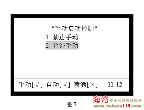 在圖2界面下,按1 進入“手動啟動控制”界面如圖3所示。