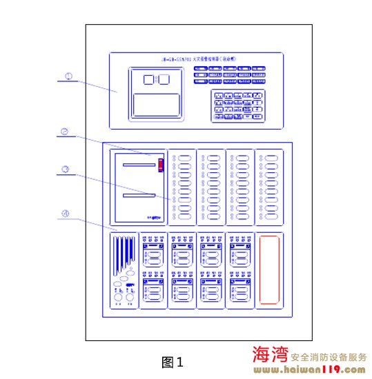 JB-QB-GST200火災(zāi)報警控制器(聯(lián)動型)面板由顯示操作區(qū)、總線制控制區(qū)、多線制控制區(qū)及打印機面板組成,其結(jié)構(gòu)示意圖如圖1所示: