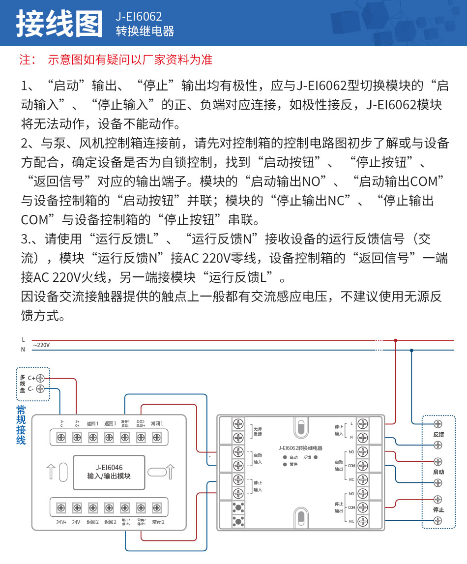 依愛(ài)J-EI6062切換模塊 轉(zhuǎn)換繼電器接線圖